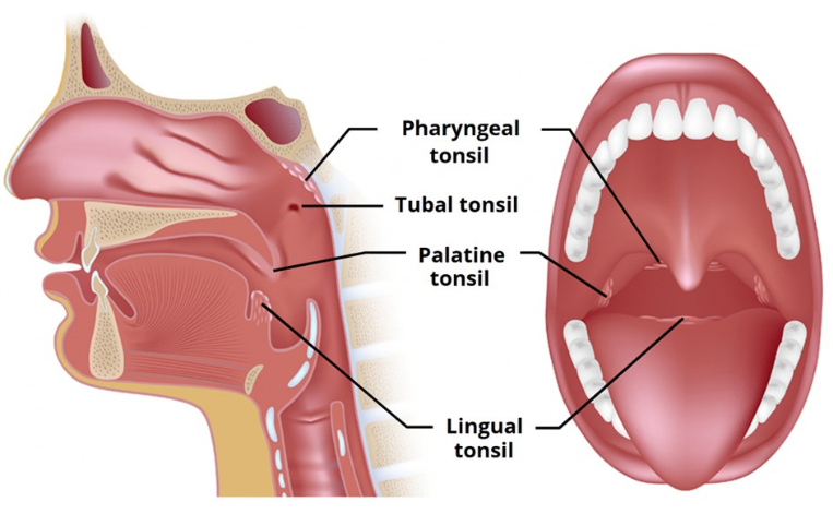 Tubal tonsils: Located on either side of where the nasal cavity meets the throat Tonsil issues